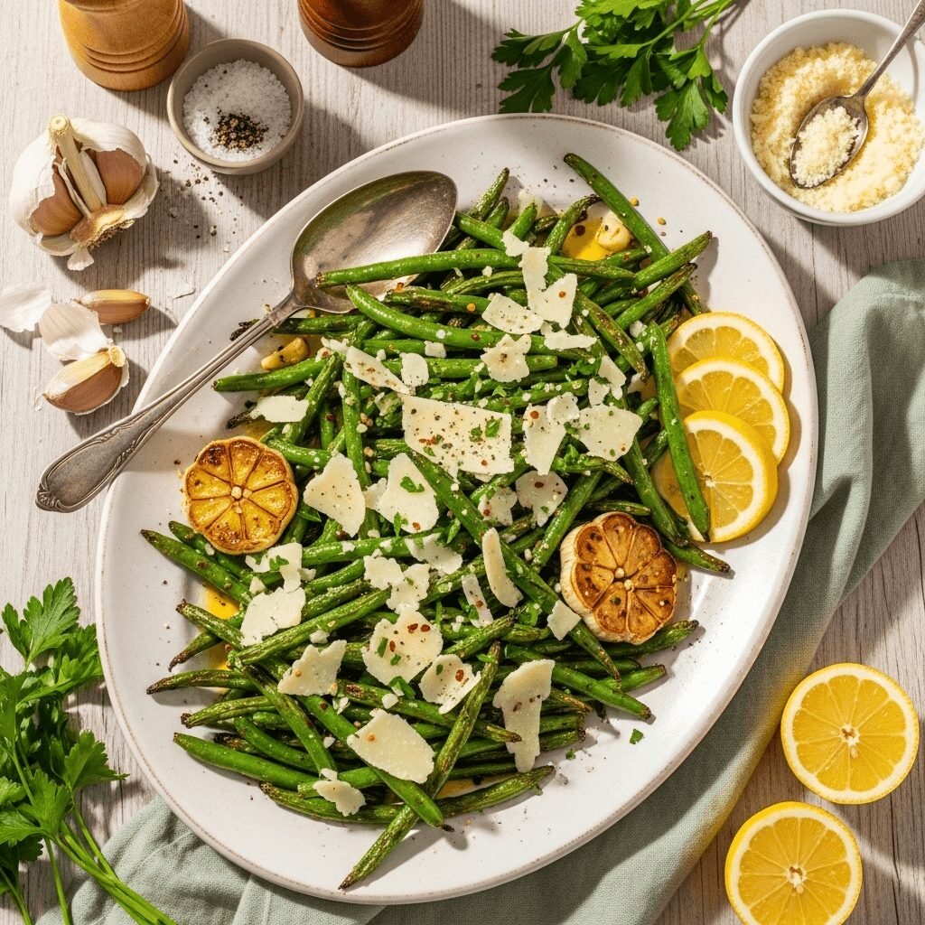 If you think green beans are boring, this Garlic Parmesan Roasted Green Beans recipe is