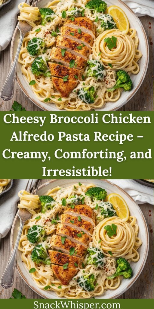 I’d absolutely love to hear about your cheesy broccoli chicken Alfredo adventure! Drop a comment below and share your experience—did your family devour it? Did you add any creative variations? How many times did you go back for seconds? And if you’re as obsessed with this creamy, cheesy comfort food as I am, please pin it to your favorite Pinterest boards so you can find it easily whenever that pasta craving hits. Share it with friends who are always searching for easy, family-friendly dinners that actually taste amazing!