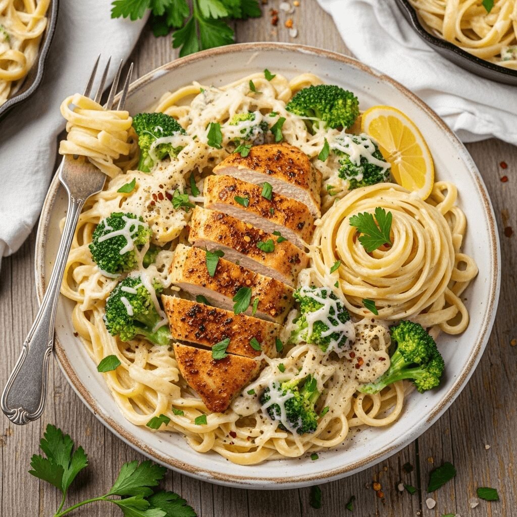 Remember, the keys to Alfredo success are straightforward: use freshly grated Parmesan, never boil the cream sauce, reserve that precious pasta water, and serve immediately while everything is hot and creamy. Follow these fundamental principles, and you’ll achieve perfect results every time—velvety sauce that clings to every noodle, tender chicken, crisp-tender broccoli, and enough cheese to make everyone swoon.