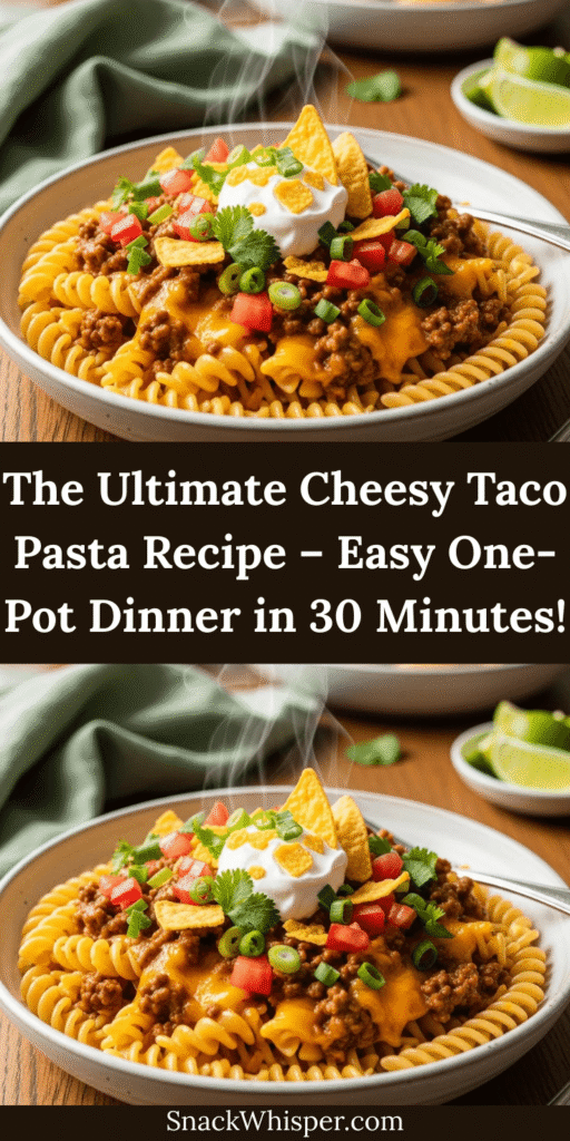 If you’ve ever found yourself craving the bold, zesty flavors of taco night but want something a little heartier and more comforting, this Cheesy Taco Pasta is about to become your new weeknight hero! This incredible dish combines everything you love about tacos—seasoned ground beef, melty cheese, tangy tomatoes, and a kick of spice—with tender pasta noodles all cooked together in one pot. It’s the perfect marriage of two beloved comfort foods: Mexican-inspired tacos and classic Italian pasta.
