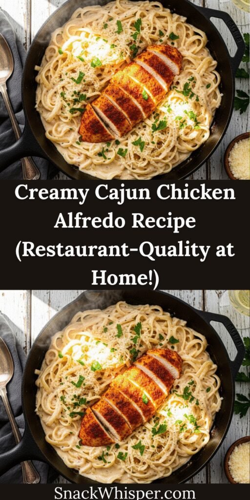 Ready to experience the ultimate fusion of creamy and spicy? Make this Creamy Cajun Chicken Alfredo tonight! Don’t forget to snap a photo and share it on Pinterest—tag me so I can see your beautiful creation! Leave a comment below with your favorite way to customize this recipe, and share it with your friends who love bold, flavorful pasta dishes. Happy cooking!