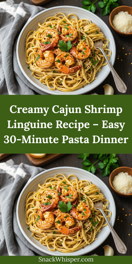 This Creamy Cajun Shrimp Linguine features perfectly seasoned jumbo shrimp in a rich, spicy cream sauce tossed with tender linguine. Ready in just 30 minutes, this restaurant-quality pasta dinner is perfect for busy weeknights or special occasions.