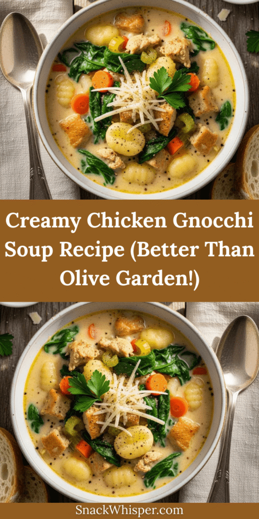 There’s something incredibly comforting about a bowl of creamy chicken gnocchi soup that warms you from the inside out. This restaurant-quality soup brings together tender chicken, pillowy potato gnocchi, fresh spinach, and a rich, velvety broth that tastes like a warm hug on a chilly day. If you’ve ever enjoyed the famous chicken gnocchi soup from Olive Garden, you’re going to absolutely love this homemade version that’s even better—and surprisingly easy to make in your own kitchen!