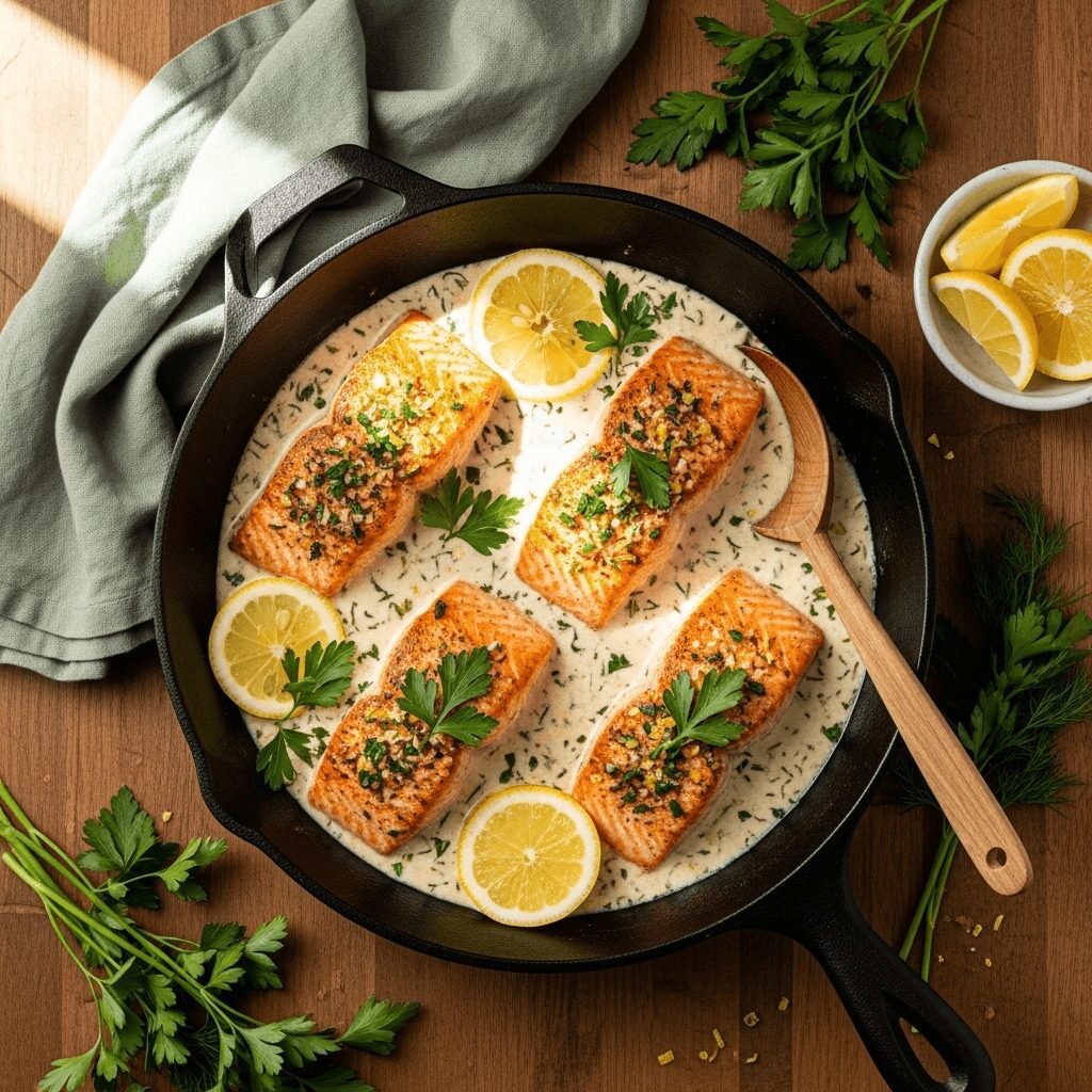 The beauty of this recipe lies in its versatility and reliability. Whether you’re cooking for a quiet Tuesday dinner, hosting friends, or preparing meal prep for the week ahead, this salmon delivers consistent, delicious results every single time. The velvety cream sauce with bright lemon and aromatic garlic creates flavors that feel both indulgent and balanced, making this a dish everyone will love.