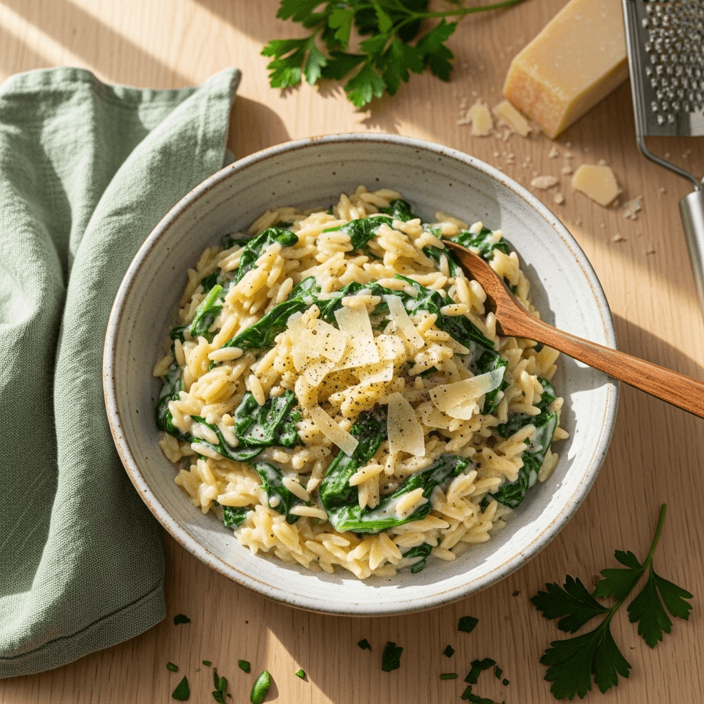 Creamy orzo dishes gained tremendous popularity on social media platforms like Pinterest and TikTok around 2020-2021, when home cooks were looking for comforting, easy-to-make recipes during the pandemic. The one-pot method became especially appealing because it meant less cleanup, and the creamy, carb-forward nature of the dish provided that cozy feeling everyone was craving. Food bloggers and home cooks began experimenting with different variations, and the spinach-Parmesan combination emerged as a clear favorite because of how the bright green spinach contrasts beautifully with the creamy white sauce – making it as Instagram-worthy as it is delicious.