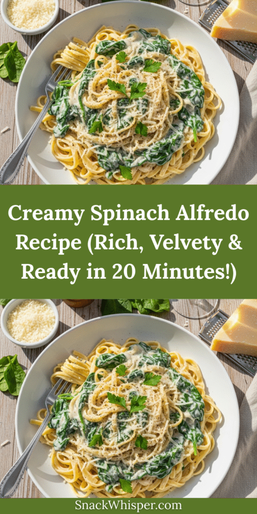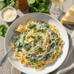 This Creamy Spinach Alfredo isn’t just another pasta dish—it’s a restaurant-quality meal that you can make at home in less time than it takes to order delivery. The luscious, velvety sauce coats every strand of pasta perfectly, while the spinach adds nutrition, color, and a subtle earthy flavor that beautifully balances the richness.