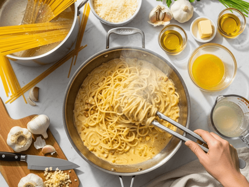 Emulsification is everything: The key to restaurant-quality Alfredo is proper emulsification—the suspension of fat in liquid. Adding pasta water helps create this stable emulsion, preventing the sauce from separating.