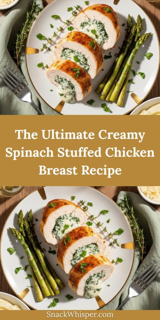 Tender chicken breasts stuffed with a rich, creamy spinach and cheese filling, then seared to golden perfection and baked until juicy. This restaurant-quality dish is surprisingly easy to make at home and perfect for weeknight dinners or special occasions.