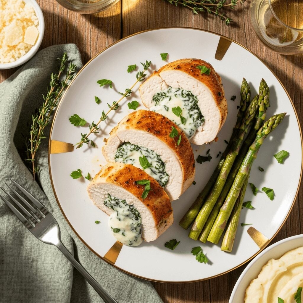 Tender chicken breasts stuffed with a rich, creamy spinach and cheese filling, then seared to golden perfection and baked until juicy. This restaurant-quality dish is surprisingly easy to make at home and perfect for weeknight dinners or special occasions.