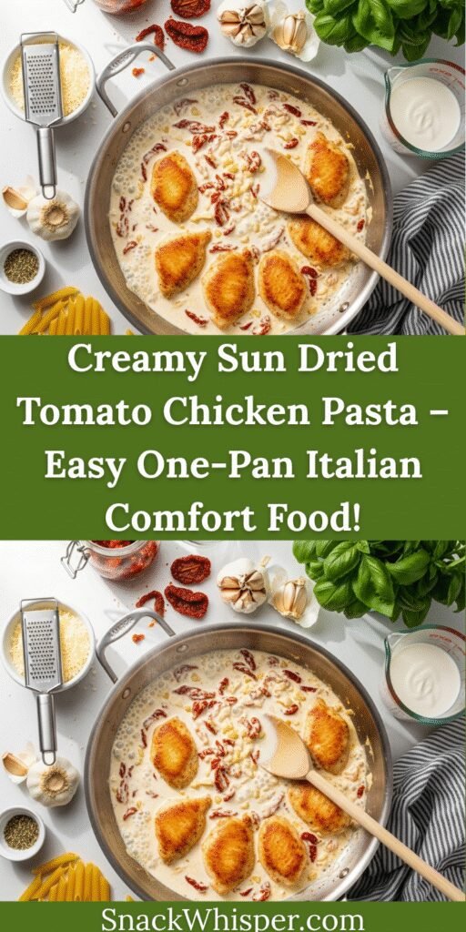 And there you have it—the ultimate Creamy Sun Dried Tomato Chicken Pasta that’s about to revolutionize your weeknight dinner routine! This restaurant-quality dish proves that you don’t need hours in the kitchen or a culinary degree to create something absolutely spectacular. With its luscious cream sauce, tangy sun-dried tomatoes, tender chicken, and perfectly cooked pasta all coming together in one pan, this recipe delivers maximum flavor with minimum effort and cleanup.