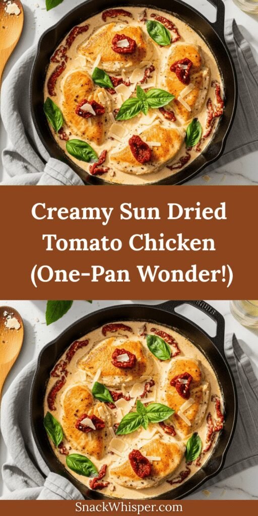 There you have it—the ultimate creamy sun dried tomato chicken recipe that’s destined to become a staple in your dinner rotation! This one-pan wonder delivers restaurant-quality flavor with minimal effort, making it perfect for busy weeknights or impressive enough to serve to guests. The combination of tender chicken, tangy sun-dried tomatoes, and that luxurious, garlicky cream sauce is simply irresistible.