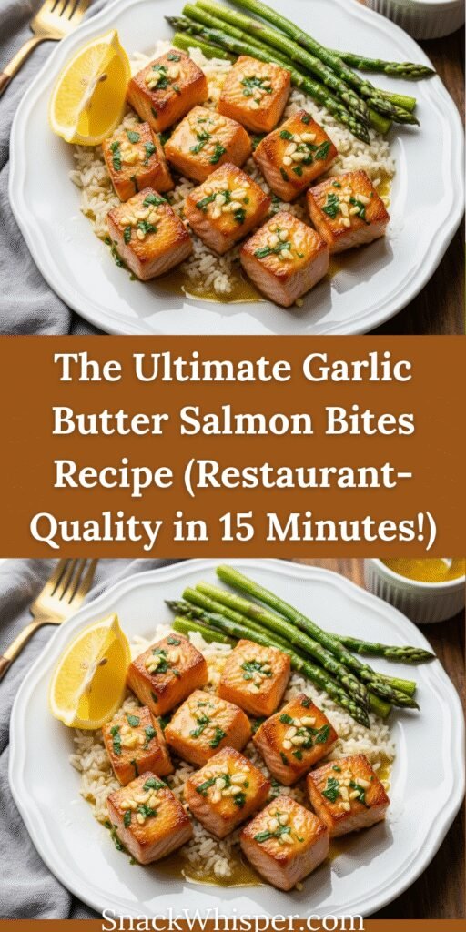 And there you have it – everything you need to create the most incredible, restaurant-worthy Garlic Butter Salmon Bites right in your own kitchen! This recipe proves that impressive, delicious, and healthy dinners don’t have to be complicated or time-consuming. In just 15 minutes, you can have tender, flaky salmon with a golden crust and the most mouthwatering garlic butter sauce that will have everyone at your table asking for seconds.