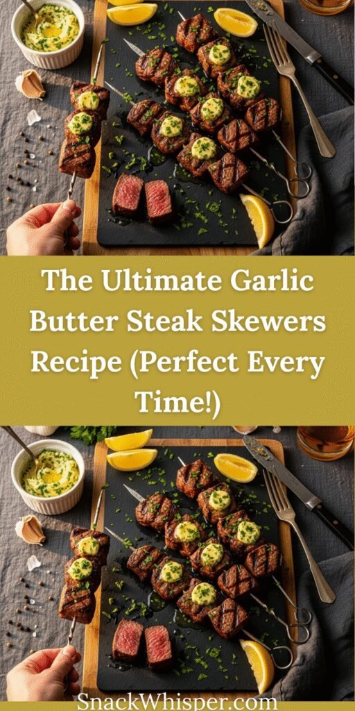 And there you have it – everything you need to create the most incredible, mouthwatering Garlic Butter Steak Skewers that’ll have everyone convinced you’ve mastered the art of cooking steak! This recipe proves that restaurant-quality doesn’t have to mean restaurant-complicated. With quality ingredients, proper technique, and that irresistible garlic butter finish, you can serve steakhouse-worthy food right from your own grill or stovetop.