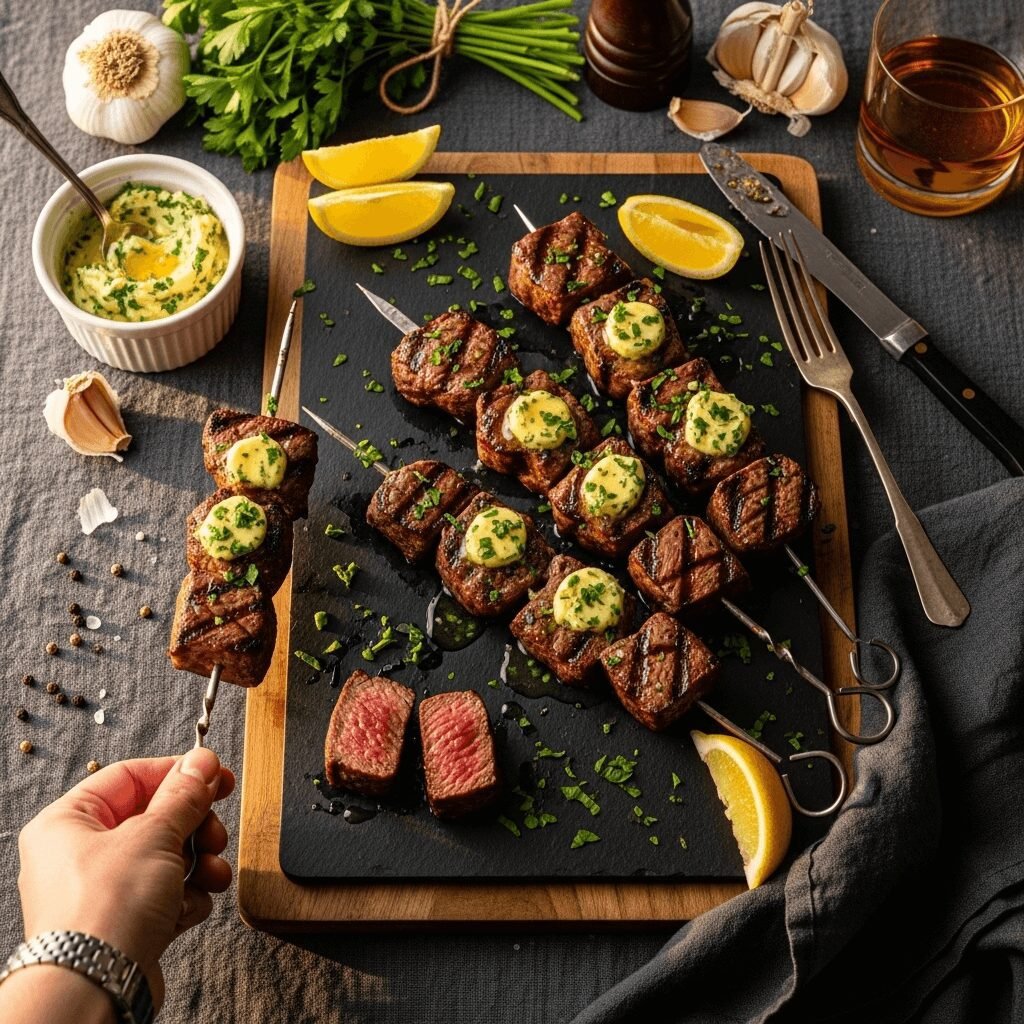 Beverage Pairings: These rich, buttery skewers pair beautifully with bold red wines like Cabernet Sauvignon or Malbec, craft beers, or for non-alcoholic options, sparkling water with lemon or iced black tea.