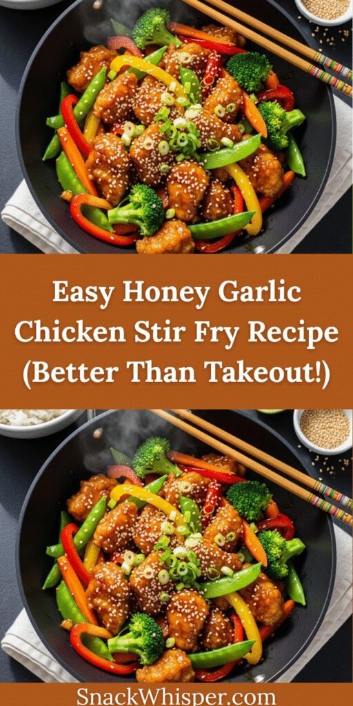 Ready to ditch the takeout menus and make this incredible Honey Garlic Chicken Stir Fry tonight? Your family is going to be so impressed! Don’t forget to snap a photo and share it on Pinterest—I’d love to see your beautiful creation! Drop a comment below telling me what vegetables you used or how you customized the sauce, and save this recipe so you can make it again and again. Trust me, this one’s a keeper! Happy cooking!